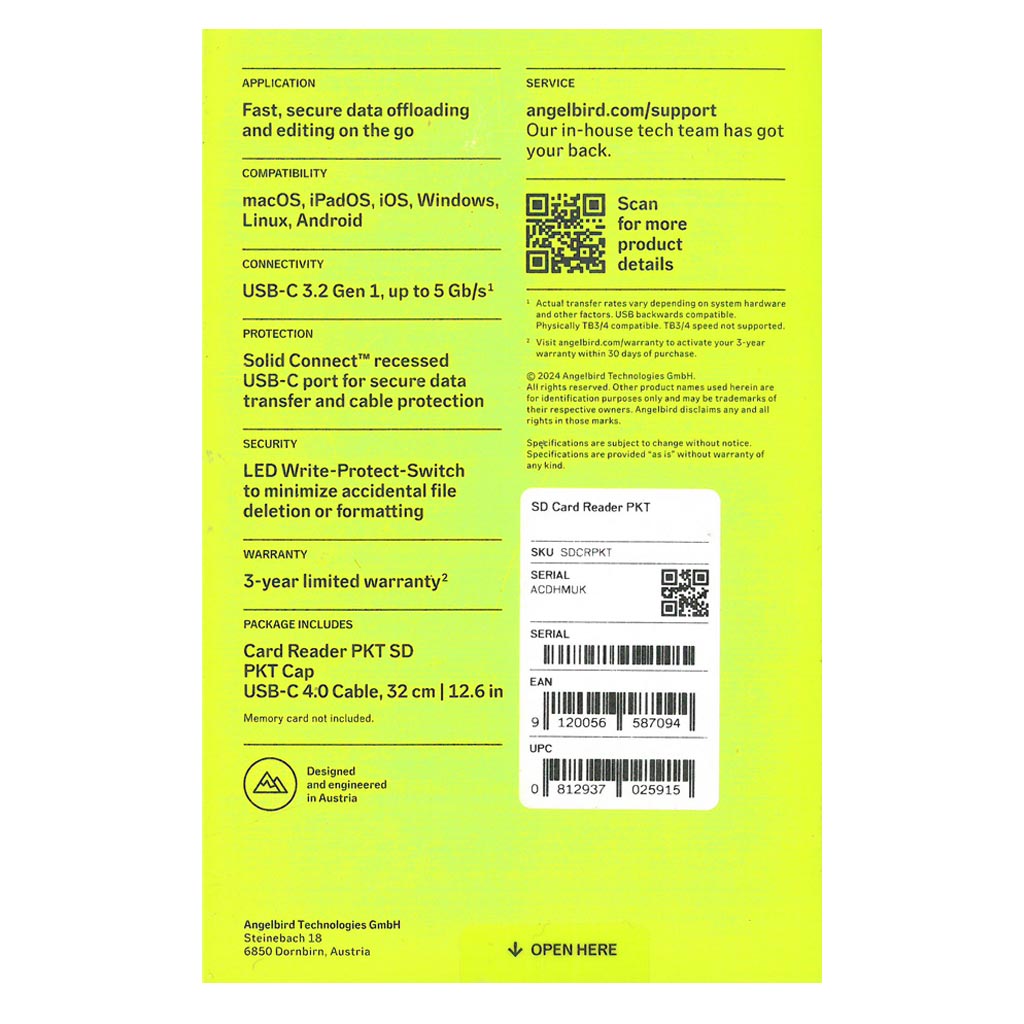 Angelbird Lettore di schede PKT SD – SDXC™ UHS-I, UHS-II – velocità impressionante fino a 5 Gb/s.
