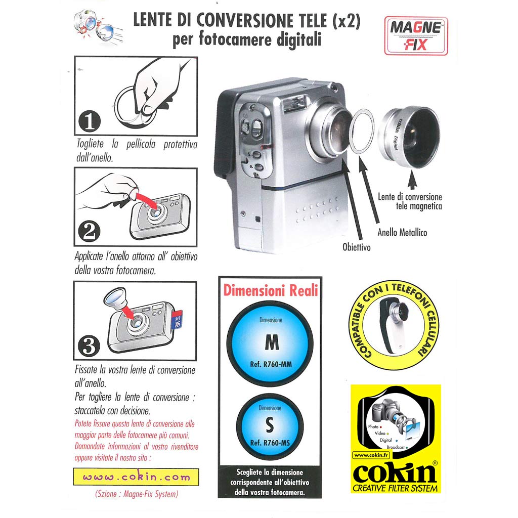 COKIN Aggiuntivo Tele 2X – modello 200 M – attacco con anello magnetico in dotazione – max diametro obiettivo 0,27 mm