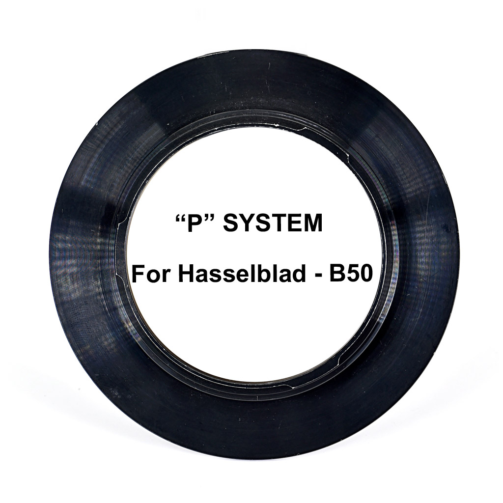 Anello adattatore “P” in metallo Cokin B-50 – per obiettivi Hasselblad serie F – sistema P – consente di posizionare il sistema di filtri Cokin P sulla baionetta dell’obiettivo.