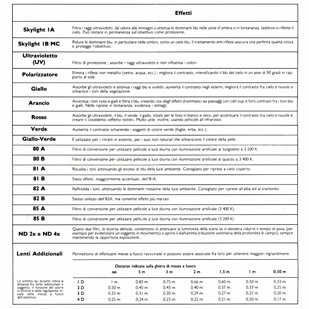 - Col cielo coperto il loro effetto diminuisce considerevolmente; l’effetto del filtro é massimo quando l’esposizione é corretta, diminuisce con la sovraesposizione.