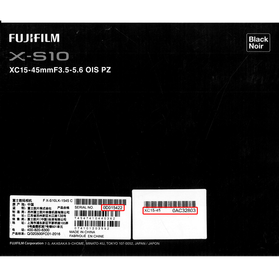 FUJIFILM X-S10 CORPO – s/n 0D015422 + OBIETTIVO XC 15-45 mm F/3.5-5.6 OIS PZ – s/n 0AC32803