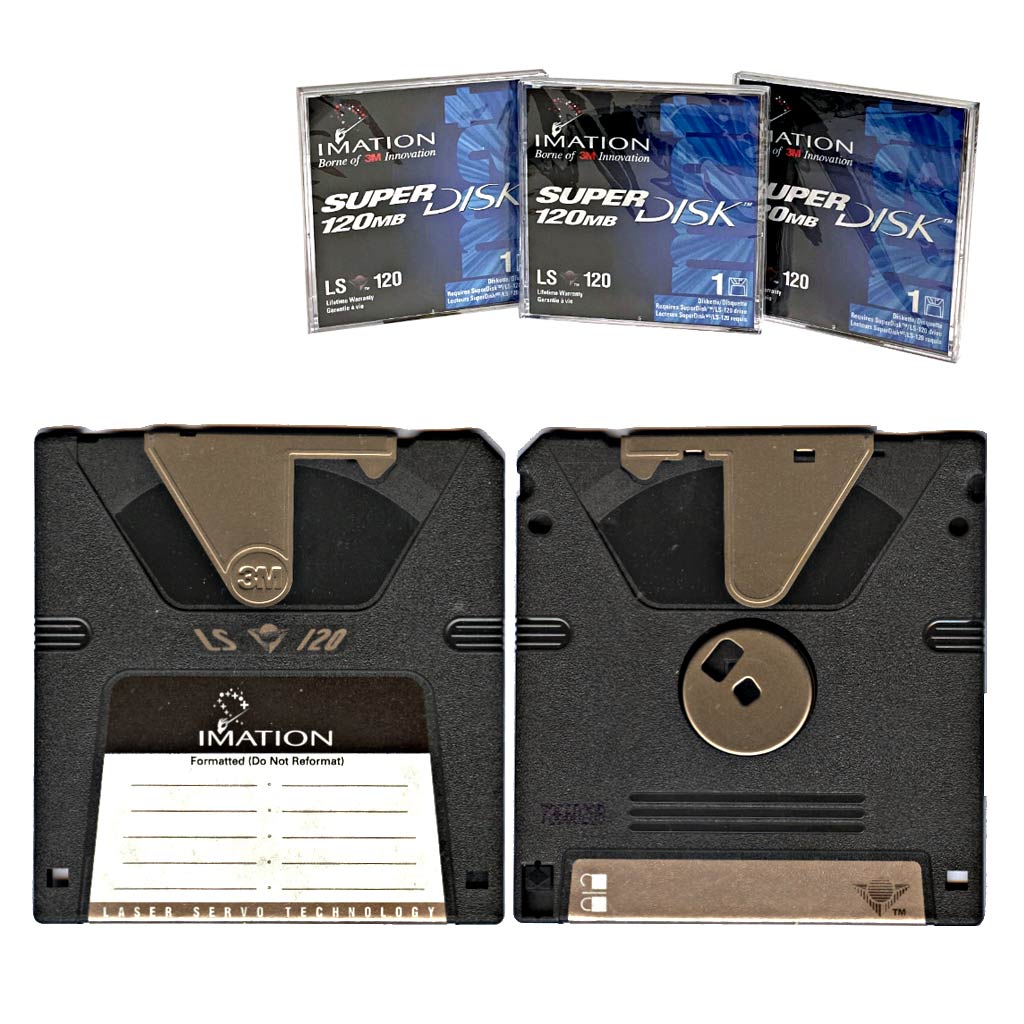 Imation Super-Disk LS 120 – capacità 120mb – confezione da 3 pezzi nuovi e sigillati nella confezione originale