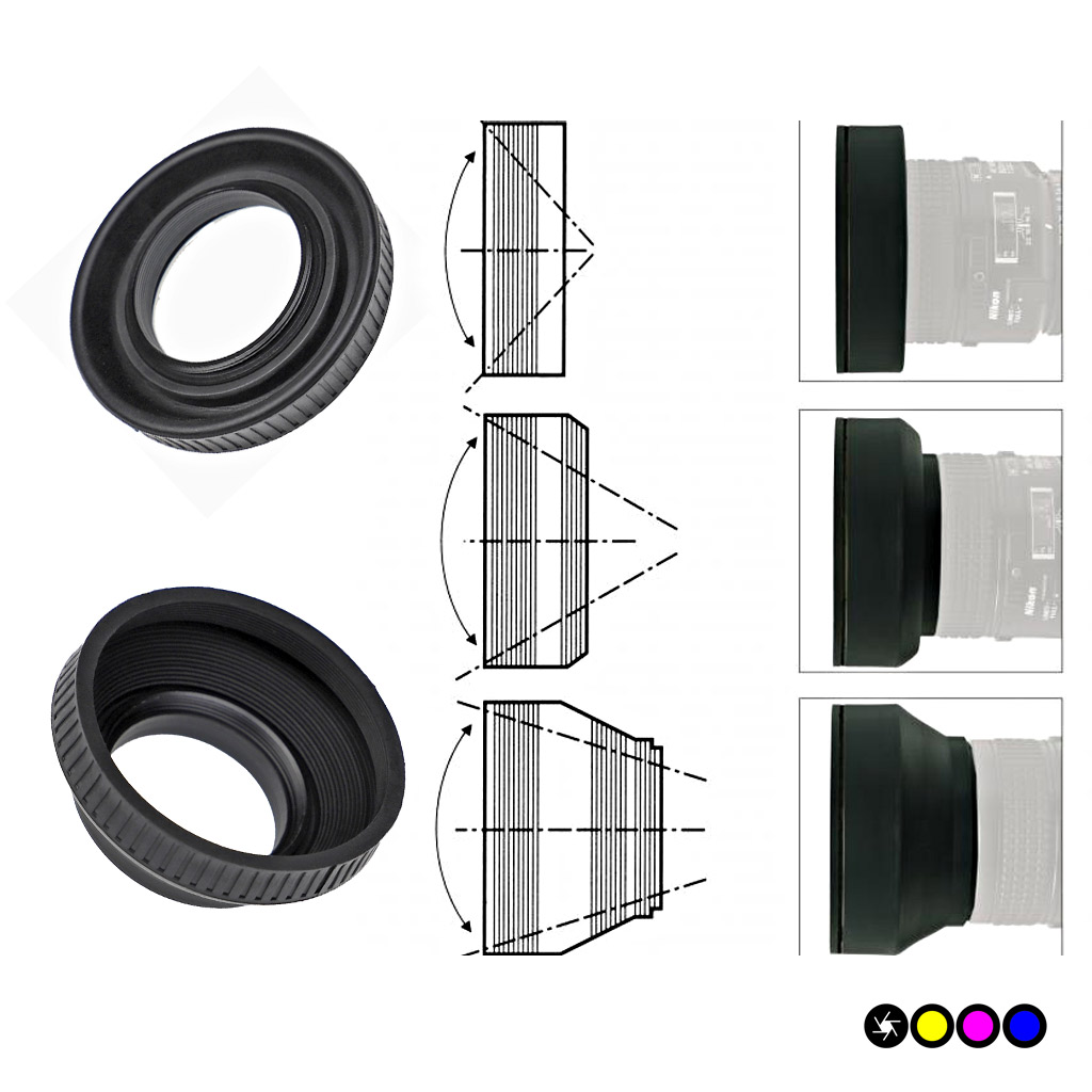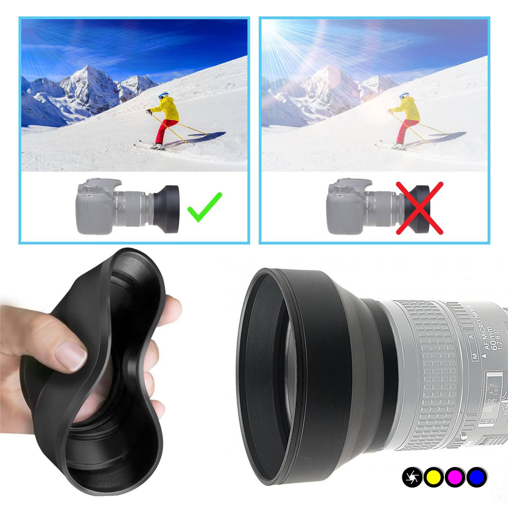 - poiché il parasole in gomma può essere completamente piegato, puoi lasciarlo sul tuo obiettivo in modo da poterlo sempre usare quando ne hai bisogno.