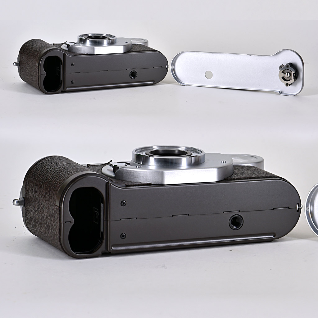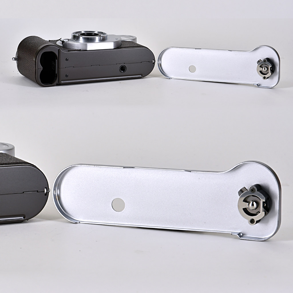 Sul fondello è presente uno switch per lo sblocco del vano batterie, a cui si accede rimuovendo l’intero fondello (così come avveniva nelle vecchie telemetro a vite per inserire la pellicola); la batteria (di cui fortunatamente esiste una versione ricaricabile) è elemento critico, in quanto la fotocamera non funziona senza alimentazione elettrica.