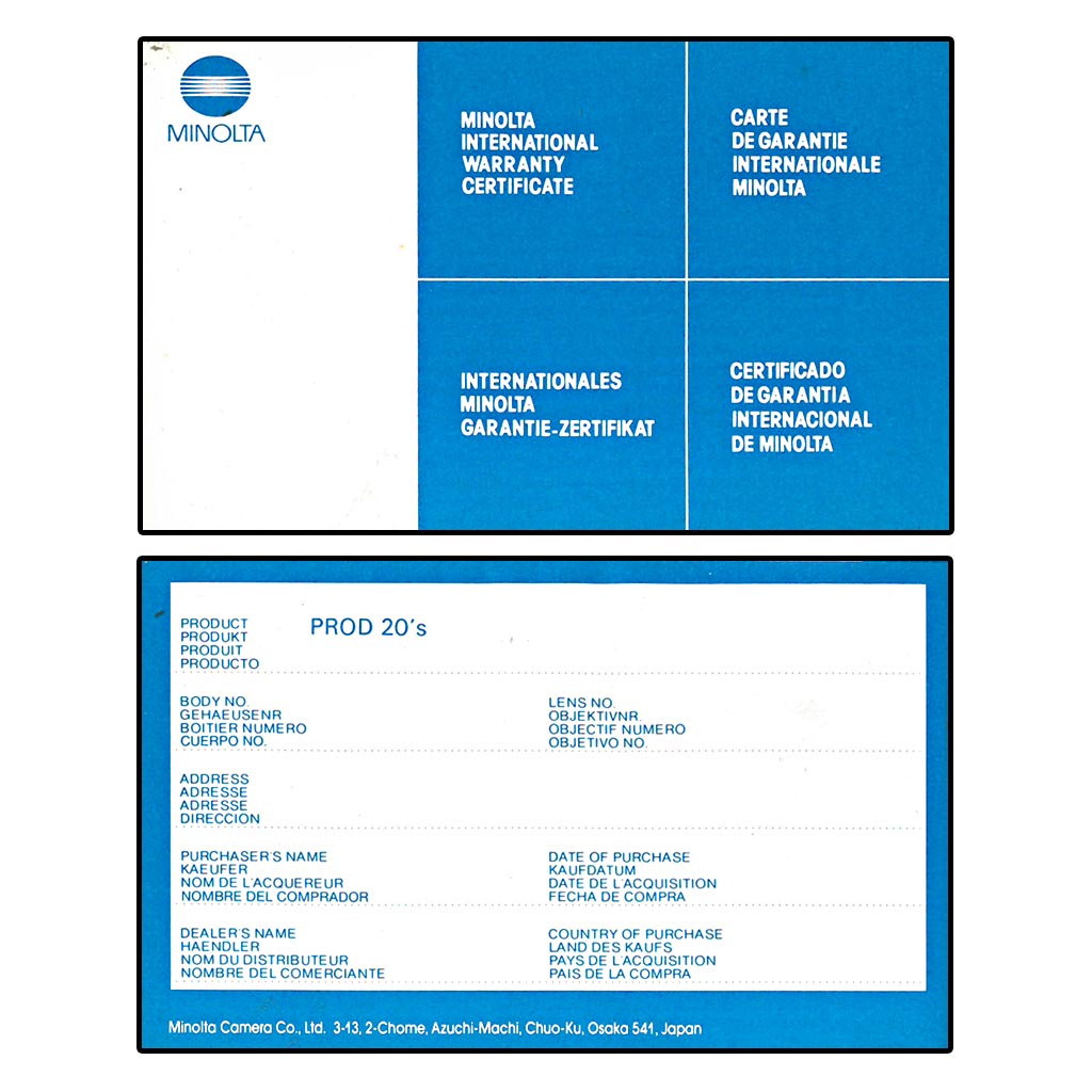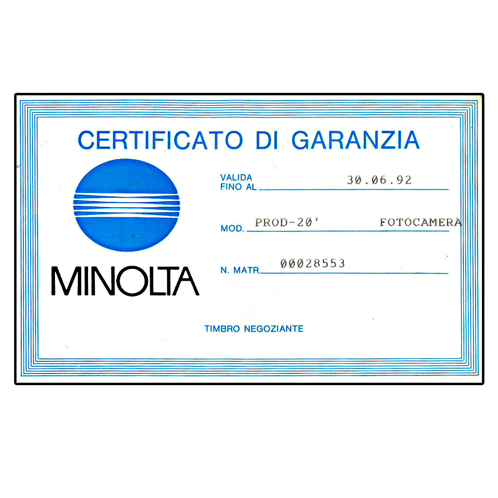 - certificato di garanzia originale Minolta