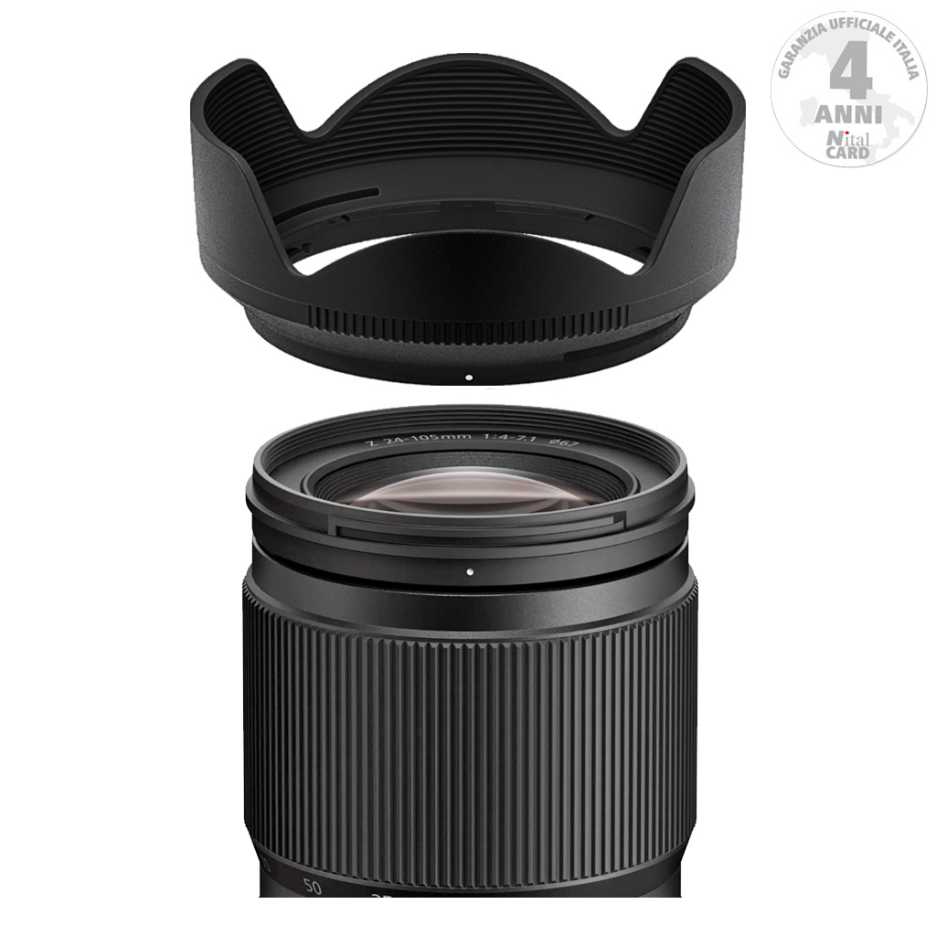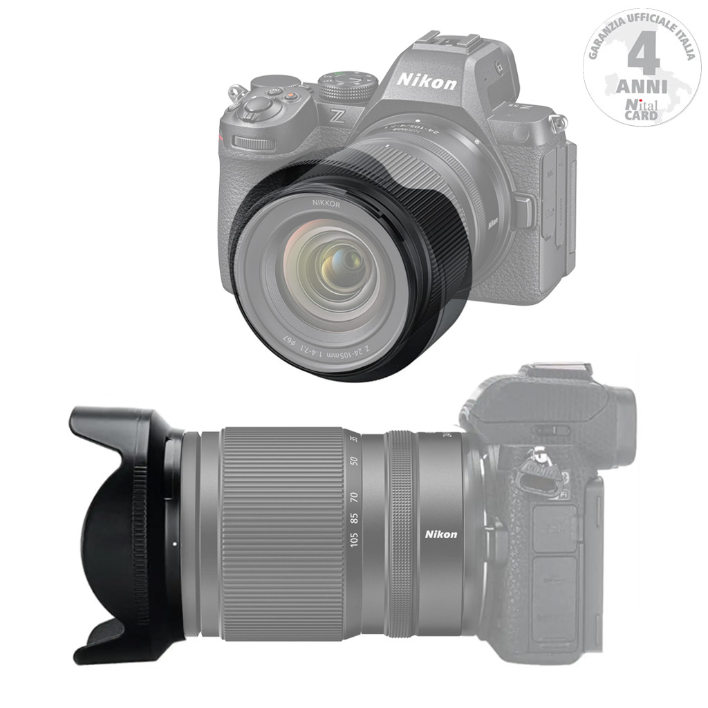 Paraluce a baionetta progettato specificamente per l’uso con l’obiettivo zoom NIKKOR Z 24-105mm f/4-7.1.