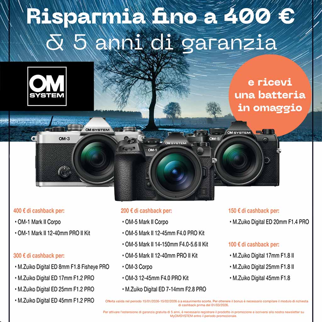 Acquista OM System e richiedi il tuo CASHBACK entro il 1 MARZO 2026 qui: CASHBACK