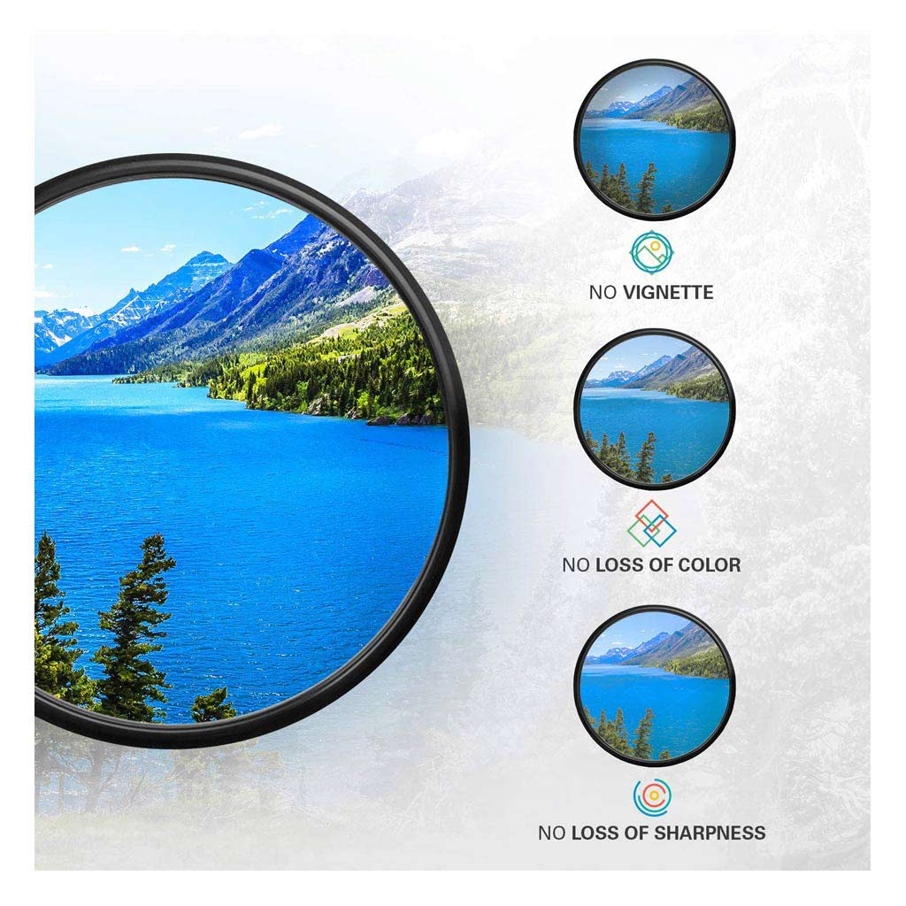 - Le cornici ultra sottili SLIM del filtro evitano la vignettatura su obiettivi super grandangolari e sono progettate anche per contenere un copri obiettivo.