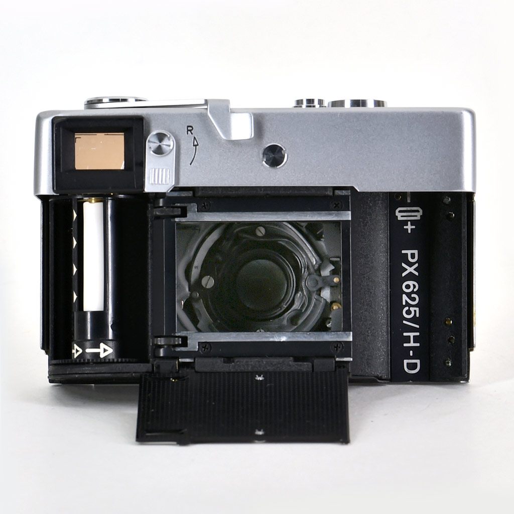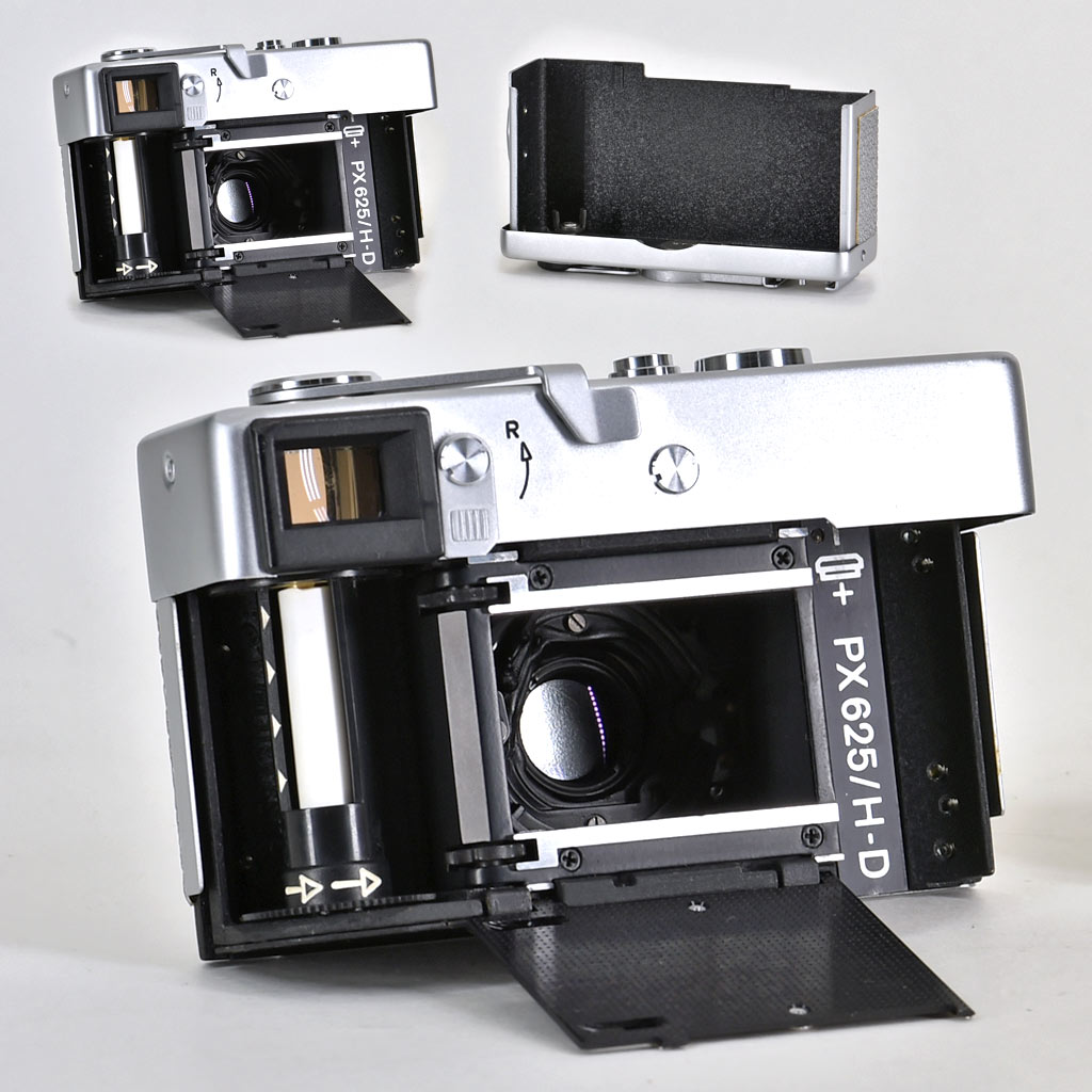 Un sorprendente mattoncino che riesce ad incorporare una normale pellicola 24×36 ed un ottimo obiettivo Carl Zeiss Sonnar da 40mm F/2.8, in soli 97mm di larghezza, 64 di altezza, 42 di profondità e 362 grammi di peso senza batteria e rullino.