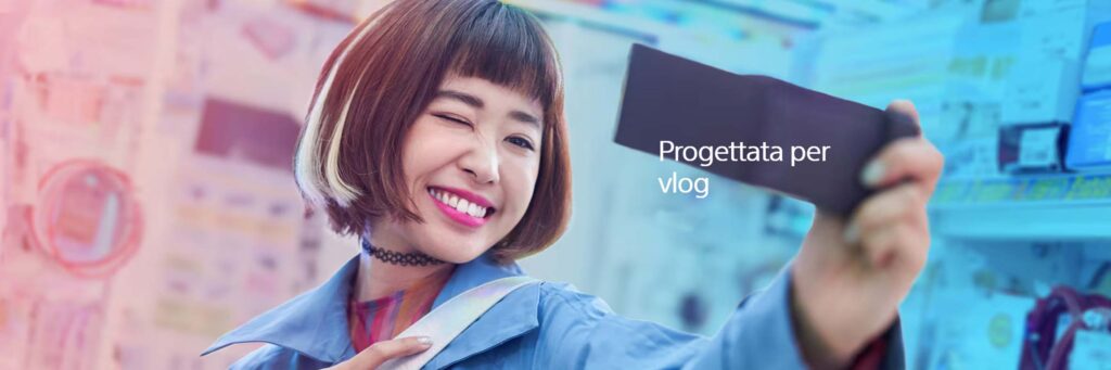 Progettata per la creazione di contenuti con uno schermo LCD ad angolazione variabile adatto ai selfie, impugnatura comoda e una spia di registrazione.